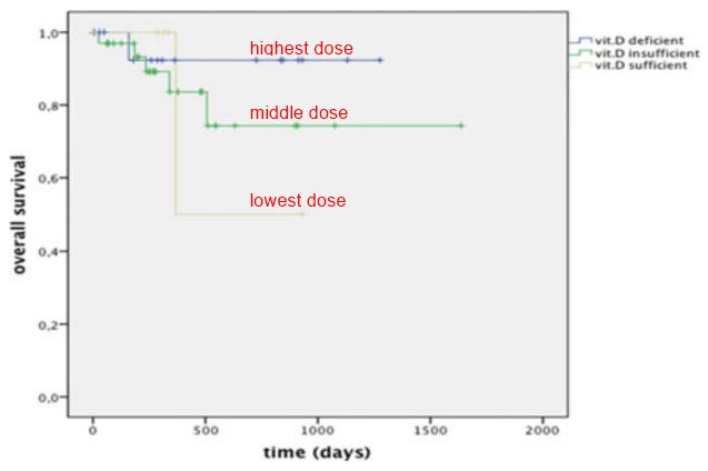 10,000IU/週(1,500IU/日)で生存率がよくなる